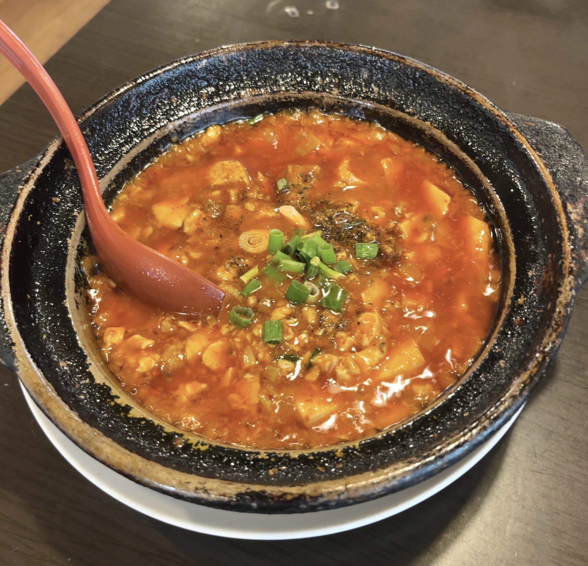ぐつぐつと音を立てて出てきた土鍋麻婆。