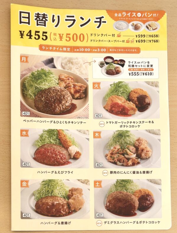 日替わりランチは、何と税込500円から。