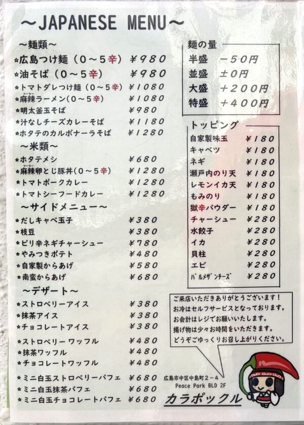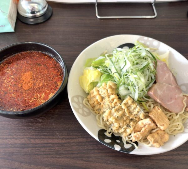 20252月に中島町にできた『カラポックル』で、広島つけ麺大盛り5辛を。