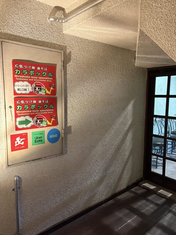 ビルの入口は、店の看板がないと入りにくい雰囲気。