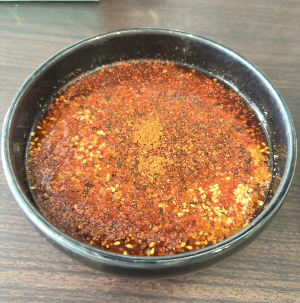 ツユが減ってくると、辛み成分である赤い粉が底に沈んでいることに気付きました。